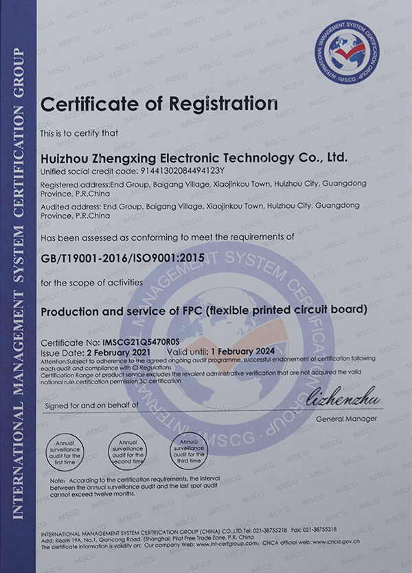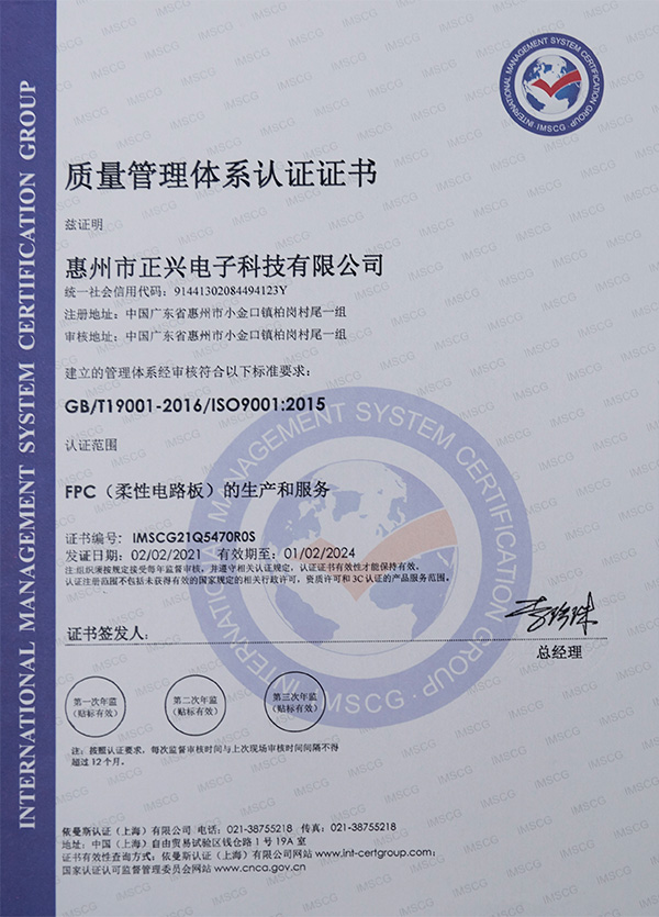 質(zhì)量管理體系證書(shū)